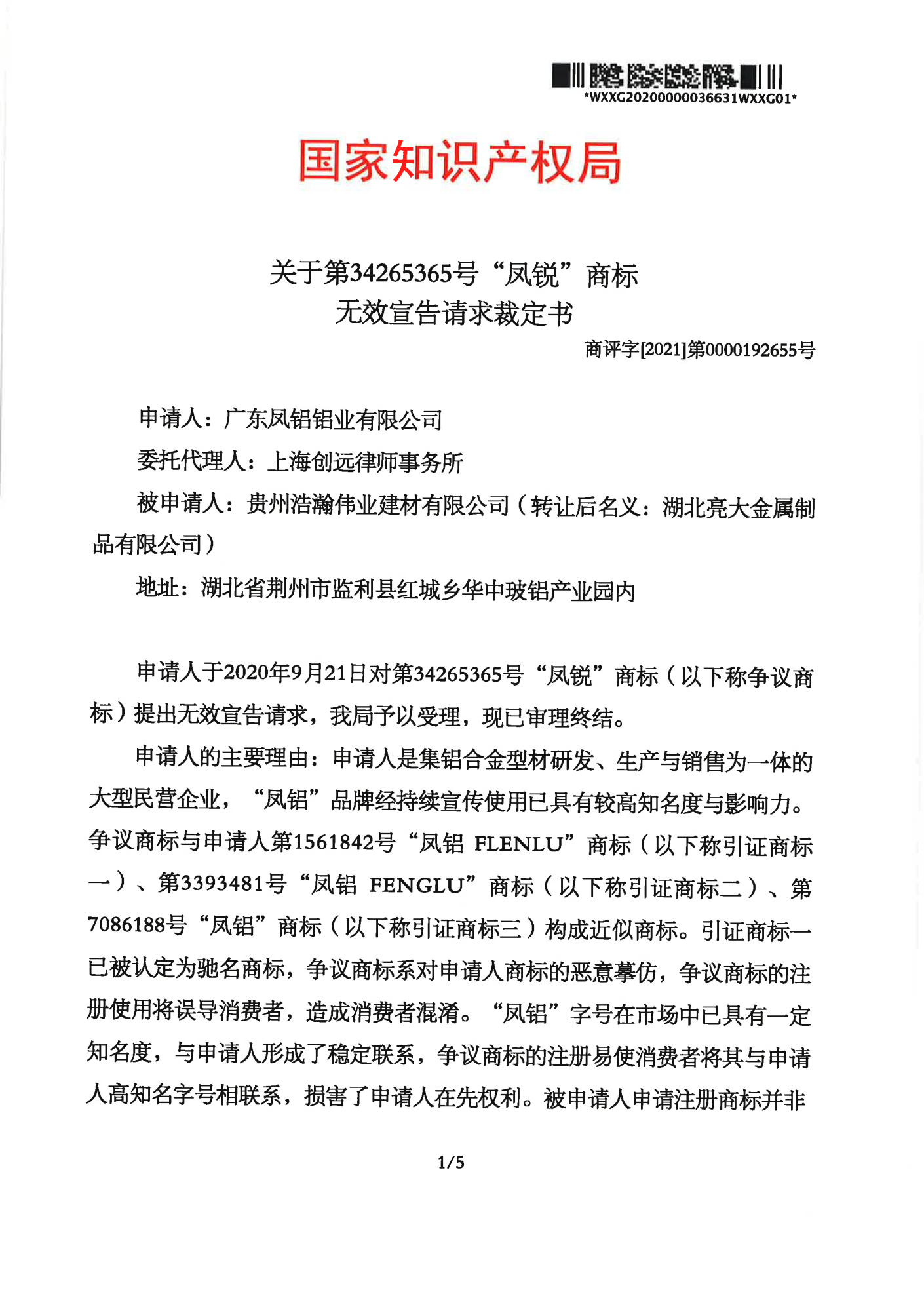 和田辉知队 | 国家知识产权局:“凤锐”商标无效