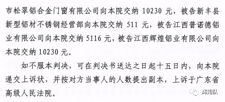和田凤铝系列维权案:诉辉煌公司等四被告,法院判赔250余万