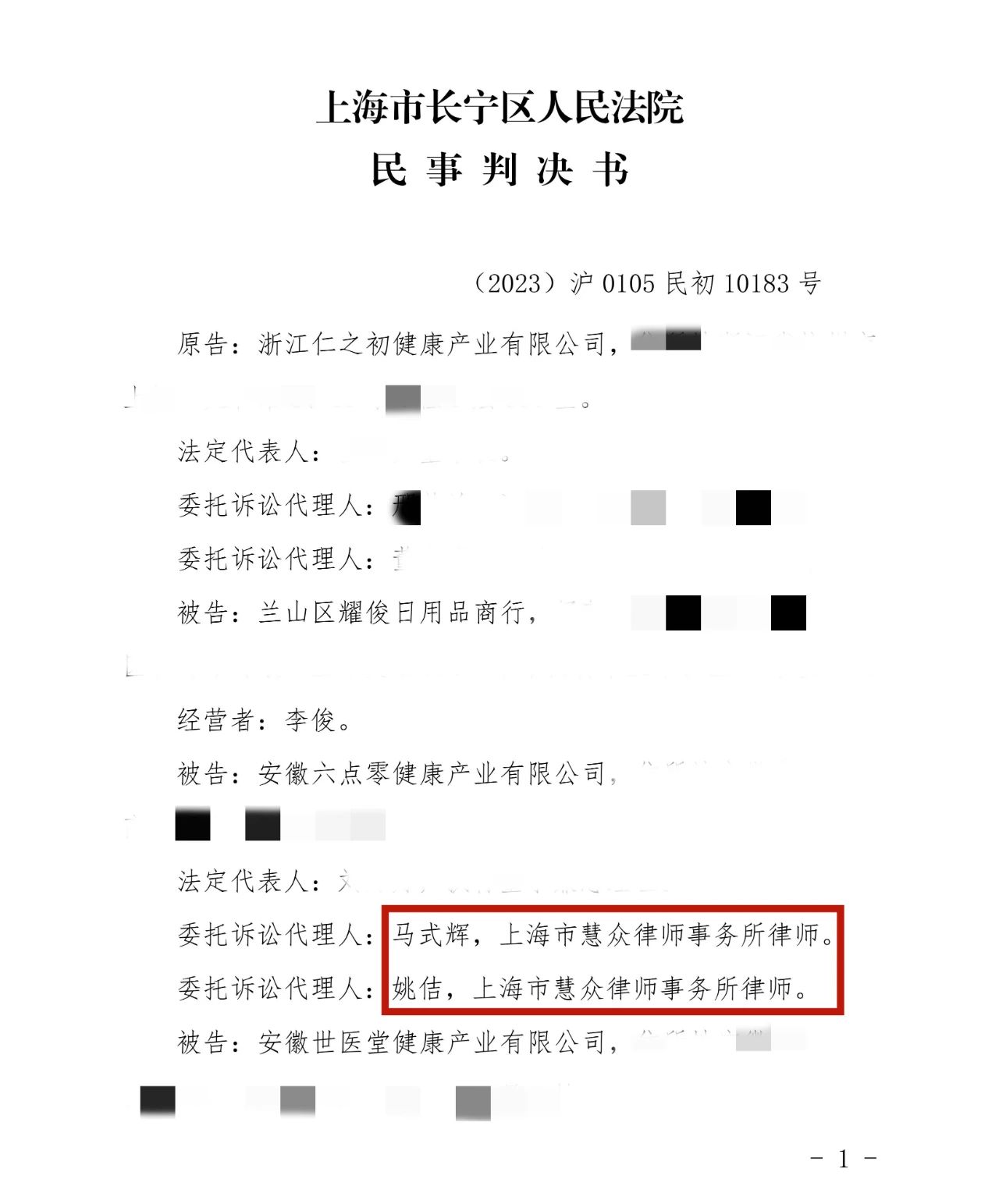 近日,上海慧众律师事务所辉知队收到上海市长宁区人民法院(2023)沪0105民初10183号判决书。