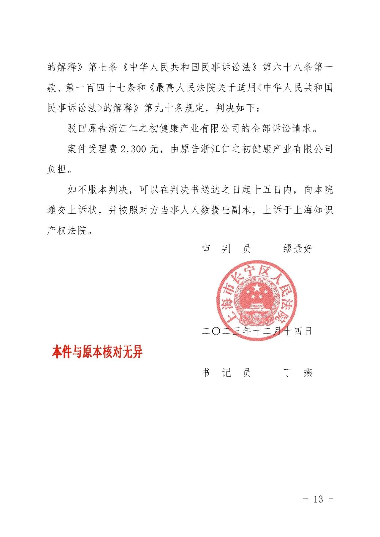 和田辉知胜诉佳讯 | “仁之初健康”著作权及不正当竞争纠纷案,法院:驳回全部诉讼请求!
